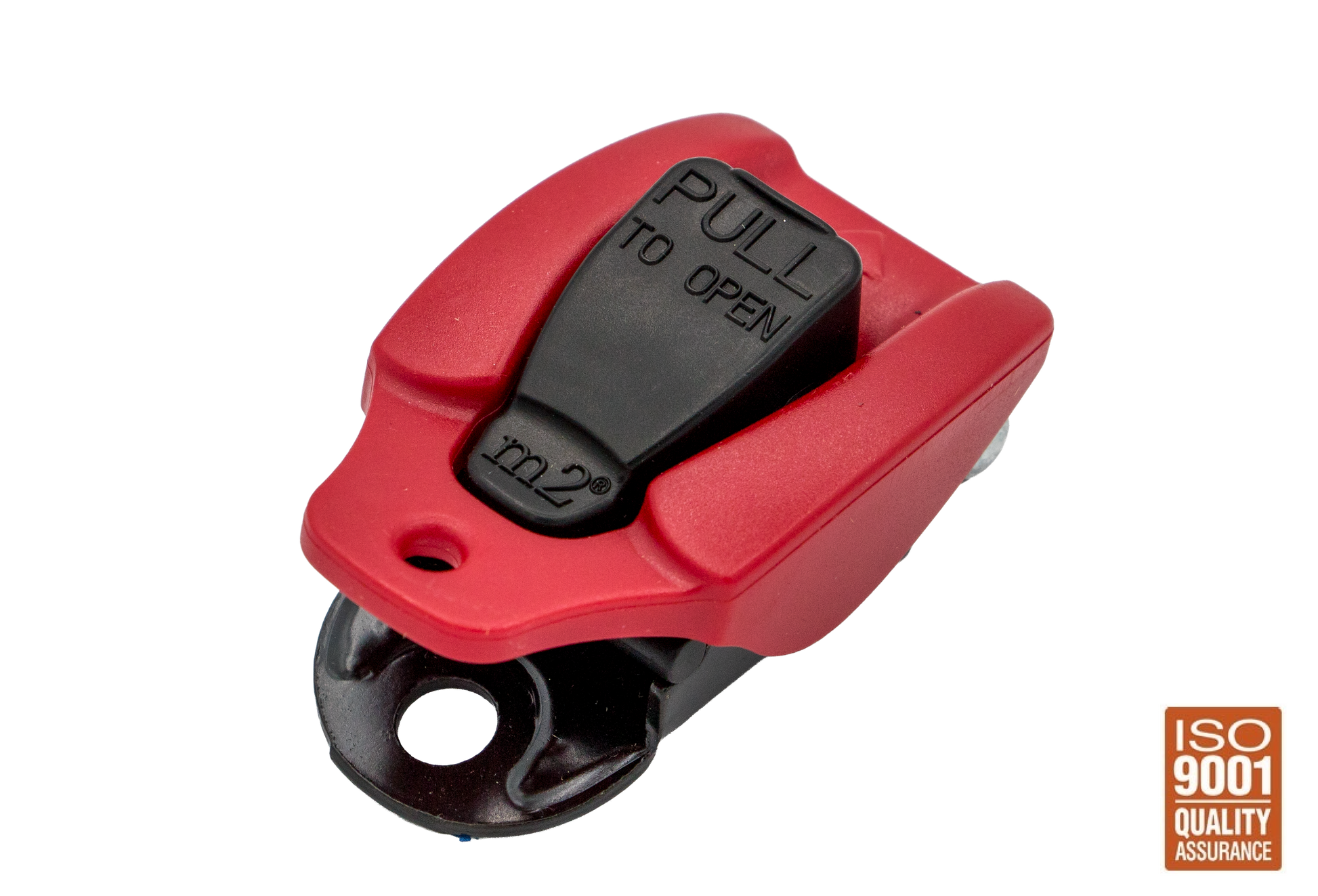 High Tensile Strength 1″ Ratcheting Buckles in Red/Black Thermoplastic.