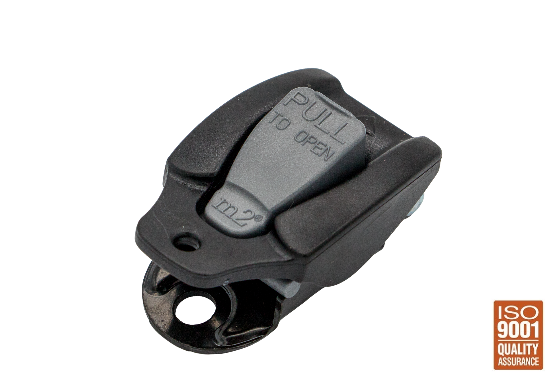Choice of FLUSH release buckle or HIGH release buckle with or without anti-rotation tab.